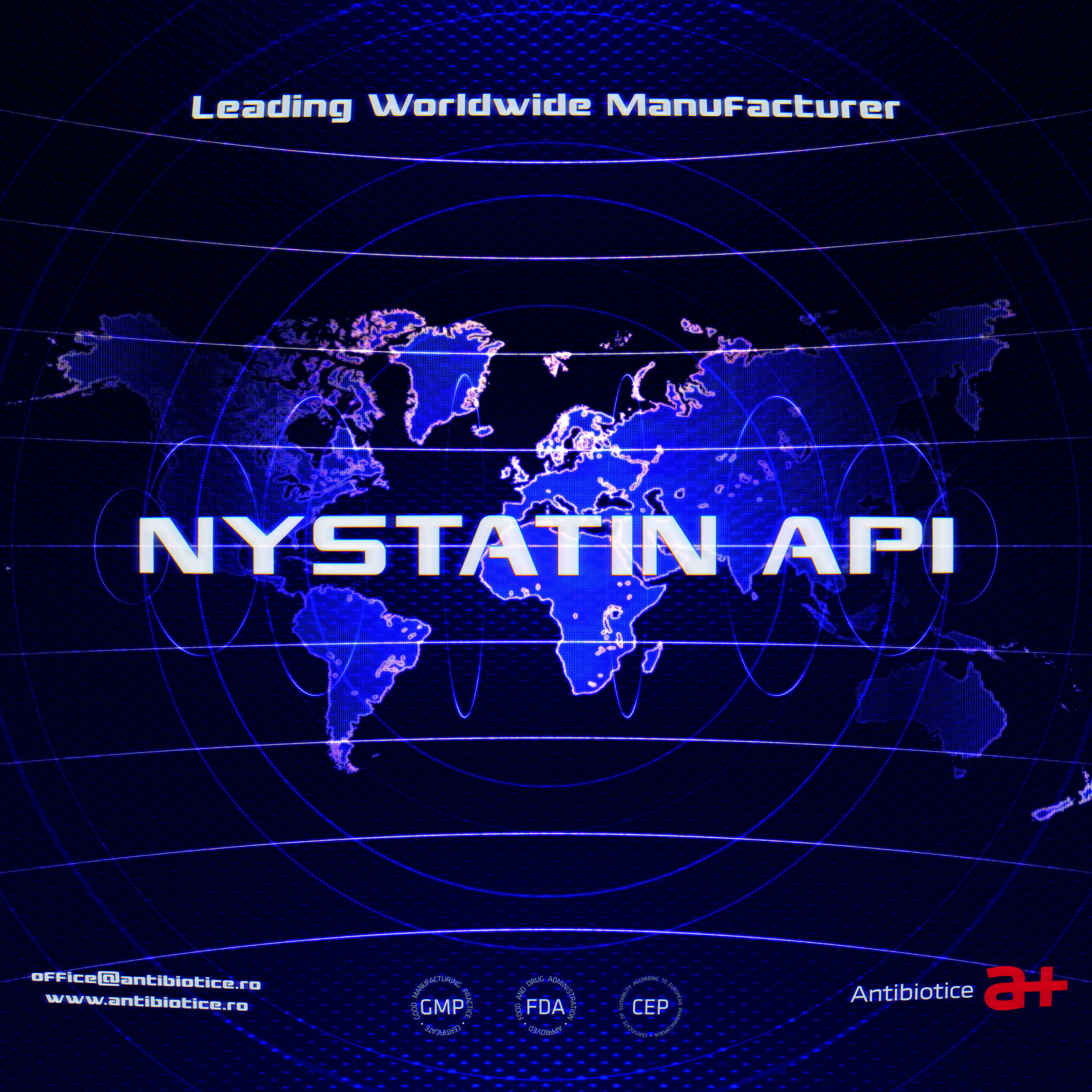 - Lider Mondial în producția de Nistatina, Standard internațional de referință USP. Principala piață de export este SUA;